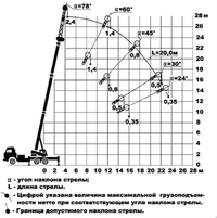 Диаграмма грузовысотных характеристик крана с удлинителем